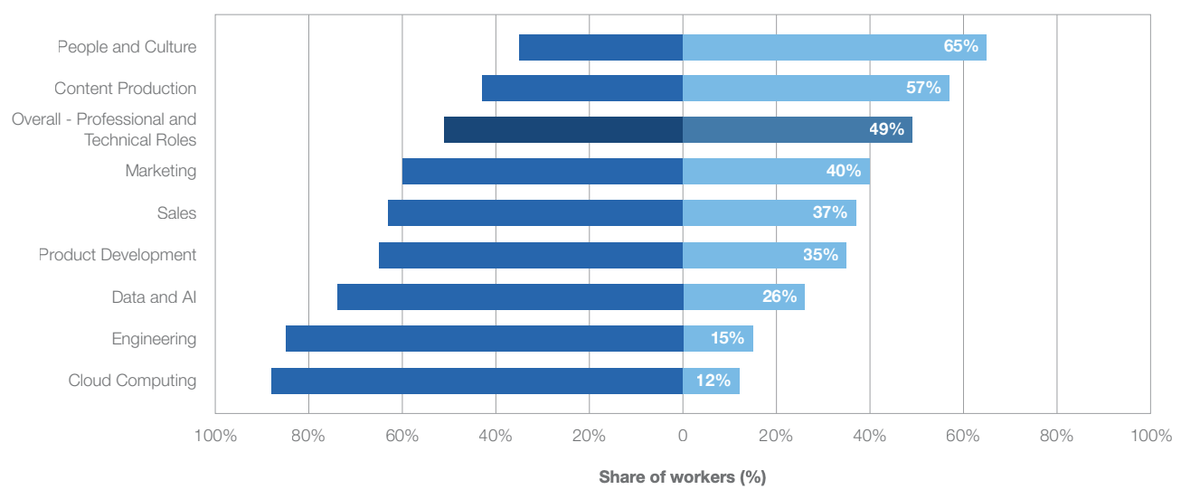 Most industries are integrating modern technologies like data, AI, and cloud computing into their future, and so it’s quite concerning to see that women are only about 12~26% involved in this.